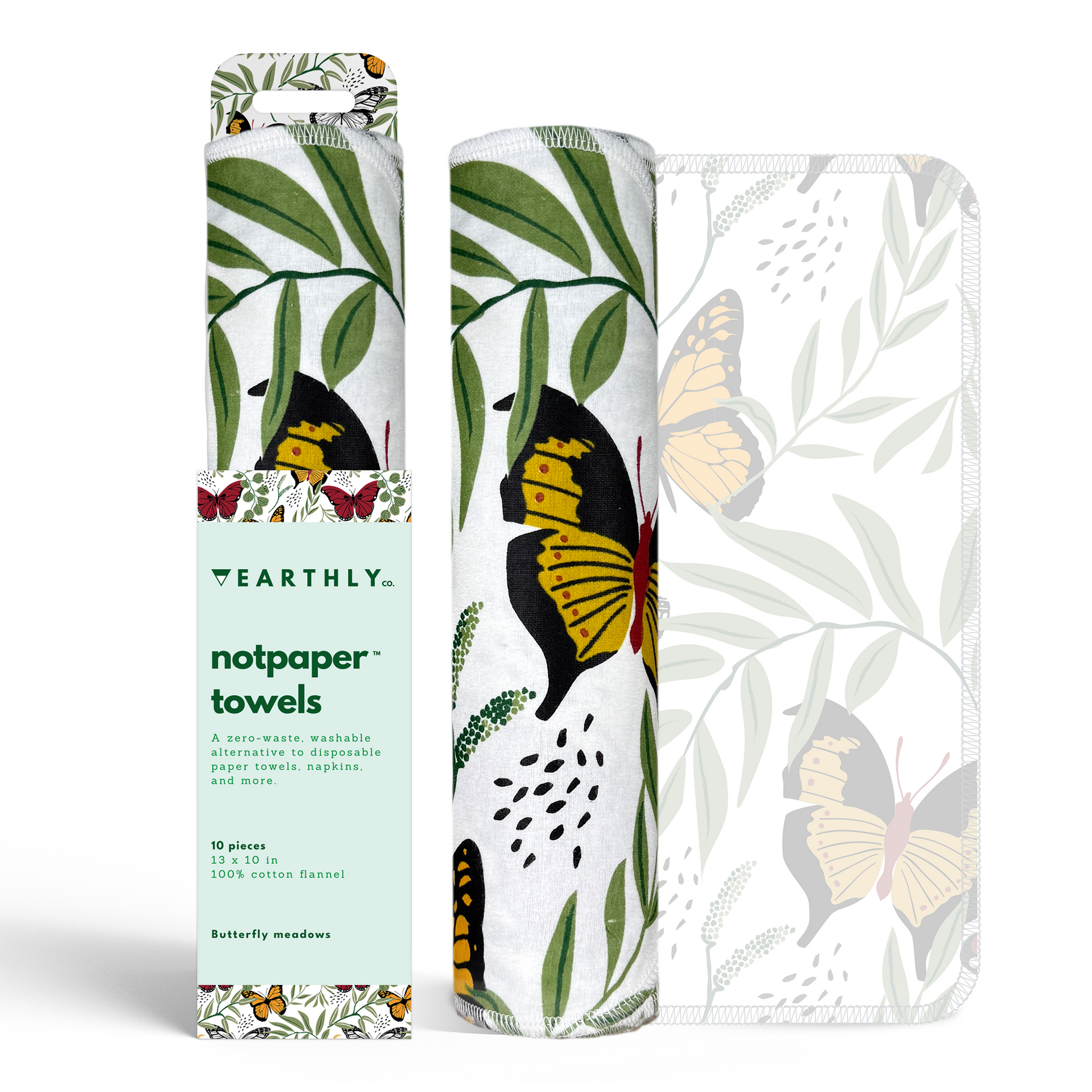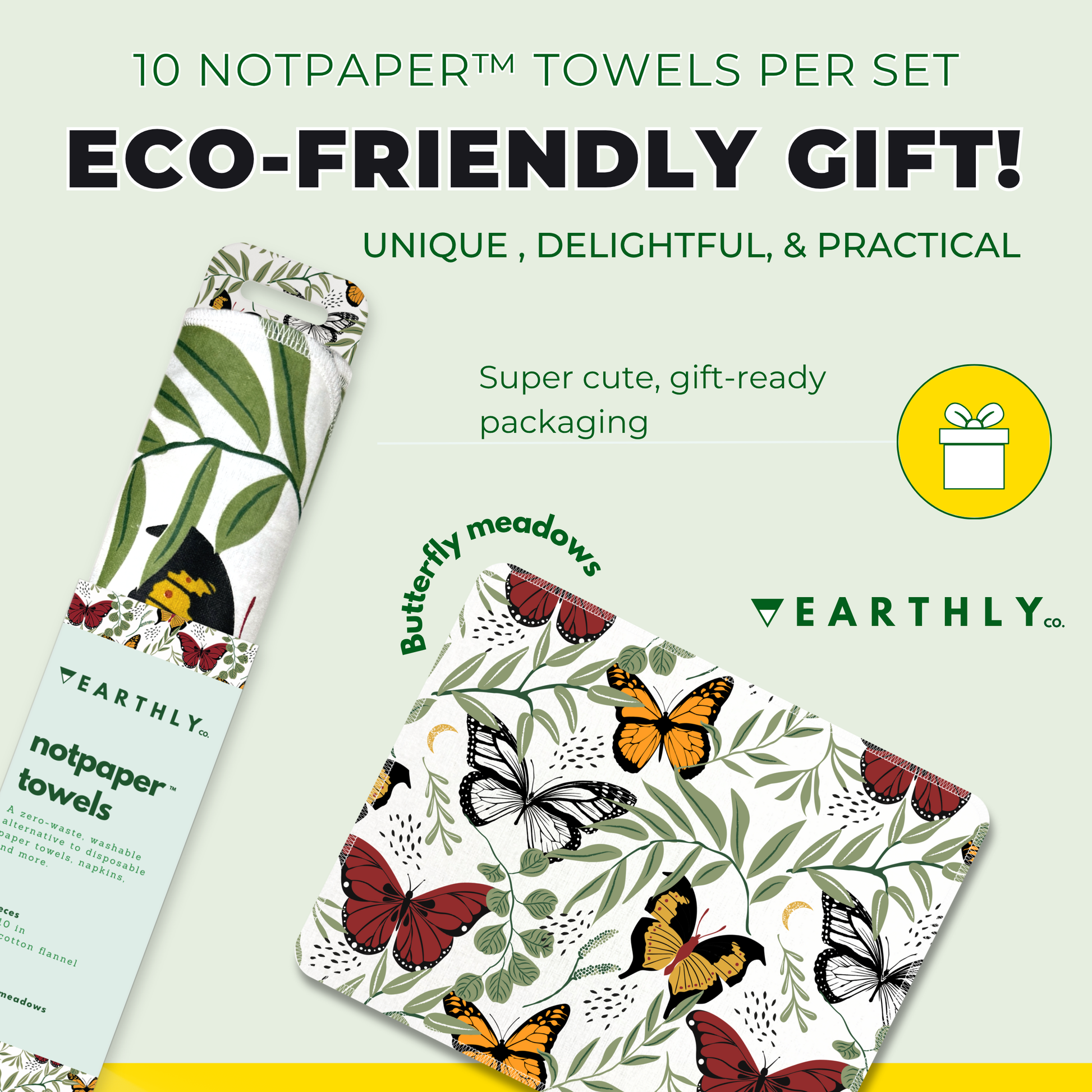 A whimsical notpaper™ towel design where delicate butterflies dance among blooming florals. Fresh, lively, and full of charm. It brings a touch of the meadow into your everyday routine. 🦋🌼