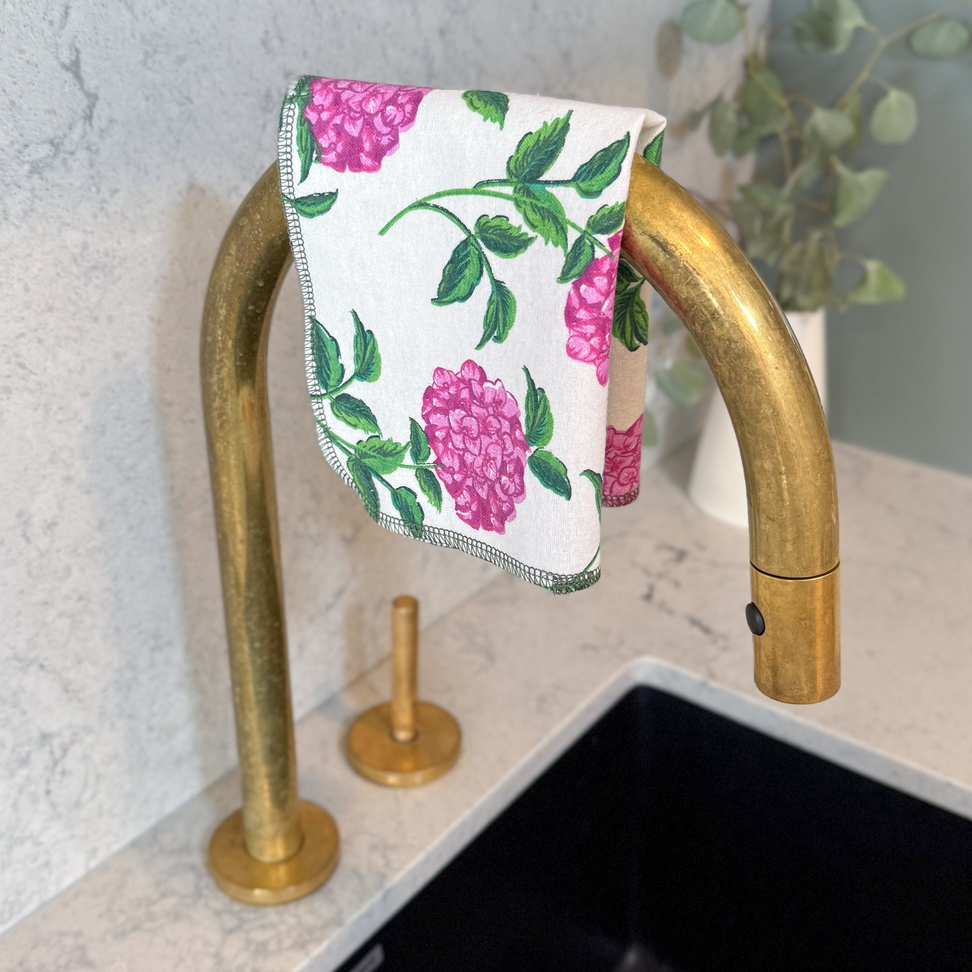 Bursting with bold pink blossoms, this joyful print brings instant charm and color to your home. Imagine pink hydrangeas blooming brightly on a summer’s day.