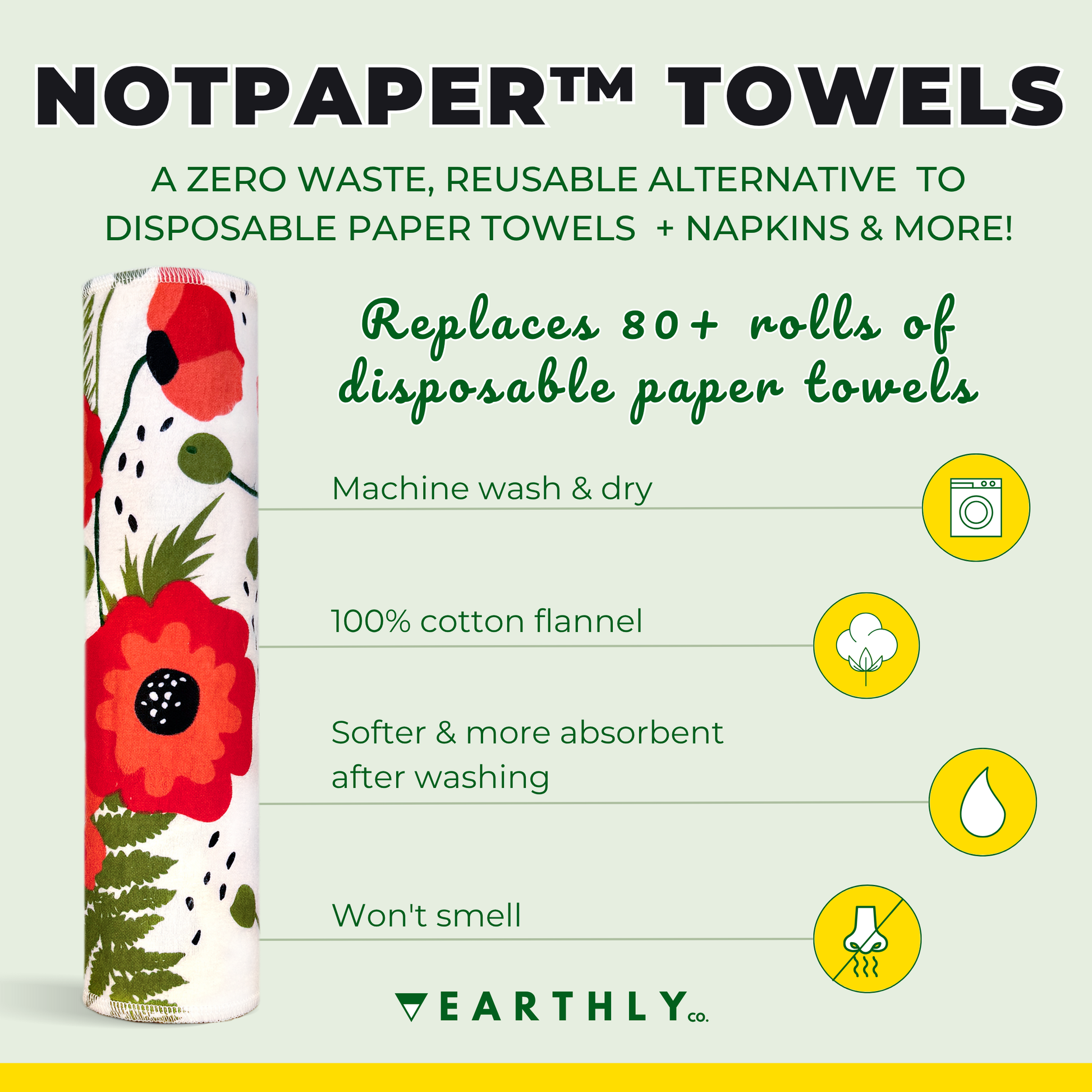 One 10 pack of our eco friendly cloth paper towels replace 80+ rolls of disposable paper towels.