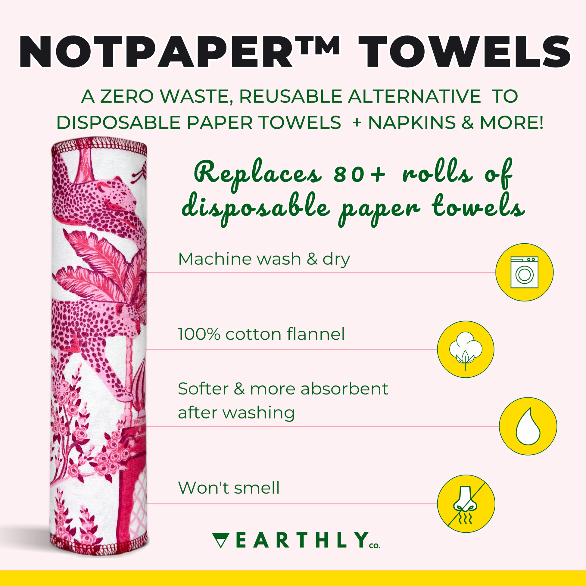 One 10 pack of our eco friendly cloth paper towels replace 80+ rolls of disposable paper towels.